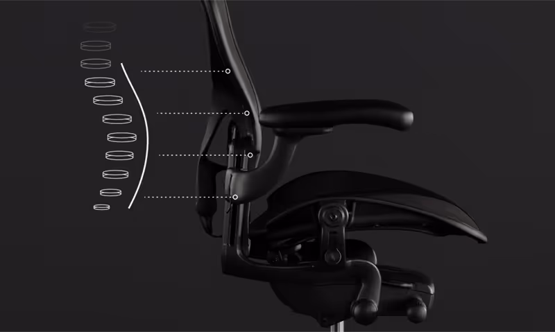 Сетчатая структура обеспечивает постоянную циркуляцию воздуха. В отличие от кресел с поролоновыми подушками, Aeron помогает избежать перегрева и неприятного ощущения «прилипания» к сиденью. Даже в тёплом помещении или летом вы остаётесь в комфортном температурном режиме.