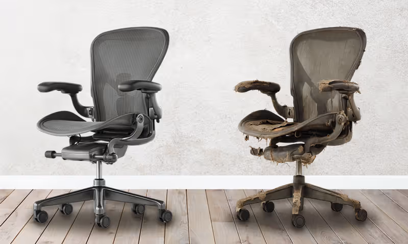 У копий всё иначе. Спустя пару лет начинаются проблемы: проседание сиденья, треск пружин, потертости. Когда перед вами Herman Miller Aeron, оригинал или подделка которого могут быть визуально схожи, определить качество можно и на слух — подлинник не издаёт посторонних звуков, в отличие от «альтернатив».