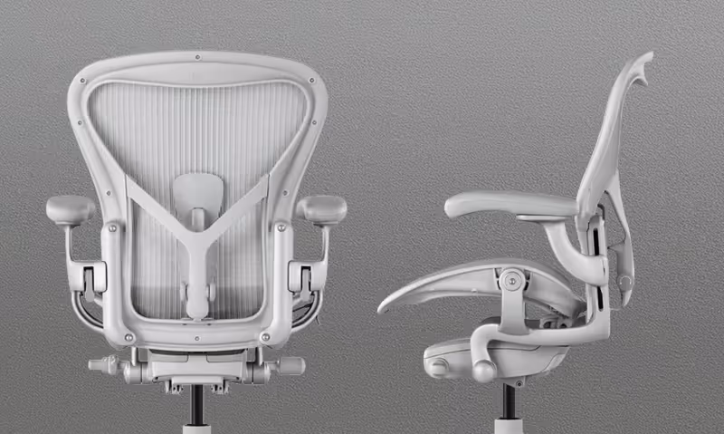 Aeron изначально был задуман как нечто большее, чем просто кресло. Дизайнеры вложили годы исследований в понимание того, как люди сидят и какие потребности у них возникают. Этот подход вылился в кресло, которое кардинально отличается от традиционных моделей своего времени. Вообще, дизайн Aeron сразу привлекает внимание своим современным, минималистичным видом. Кресло выполнено в стильной сетчатой конструкции без традиционной мягкой обивки, что позволяет ему не только выглядеть инновационно, но и обеспечивать отличную вентиляцию, а также распределение давления по всей поверхности спинки и сиденья. Кресло обладает чистыми линиями и органичными формами, которые придают ему современный и стильный вид. Оно выглядит как технологичный предмет искусства, который легко вписывается в любой интерьер. Пластиковые и металлические элементы, используемые в конструкции, не только придают креслу современный вид, но и подчеркивают его инженерные особенности. Каждая деталь продумана: от высококачественной сетки Pellicle до плавных линий сиденья и спинки.